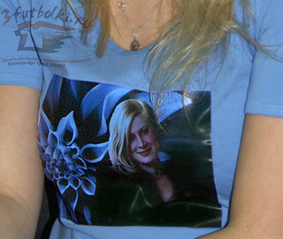 фото, перенос на сиреневую ткань футболки